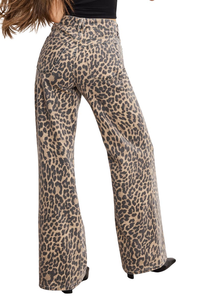 <p>Soft yet structured, these leopard-spotted jeans made from nonstretch organic-cotton denim have a gap-proof contoured waist and floor-grazing wide legs.</p>