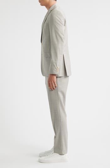 <p>A neutral sandy hue and understated plaid elevate this premium wool suit tailored to perfection with soft shoulders and a fitted waist for a versatile, refined look. The flat-front trousers feature tapered legs for a clean, contemporary silhouette.</p>