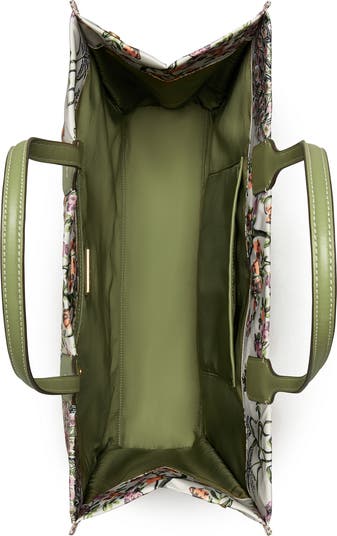 <p>A signature stacked-T logo centers a colorful floral handbag that's perfect for toting around essentials. The spacious, open interior with a few wall pockets provides plenty of space for work-to-weekend must-haves.</p>