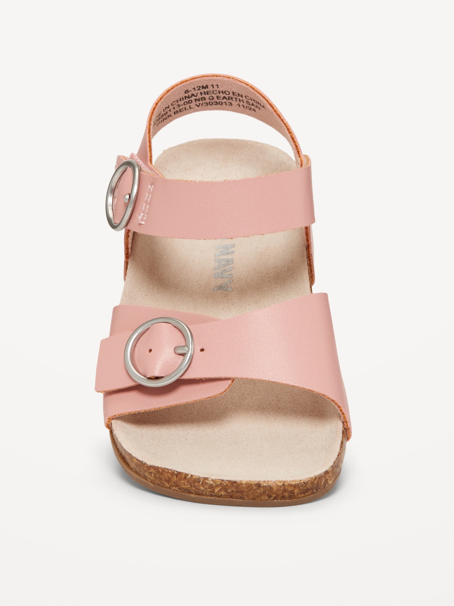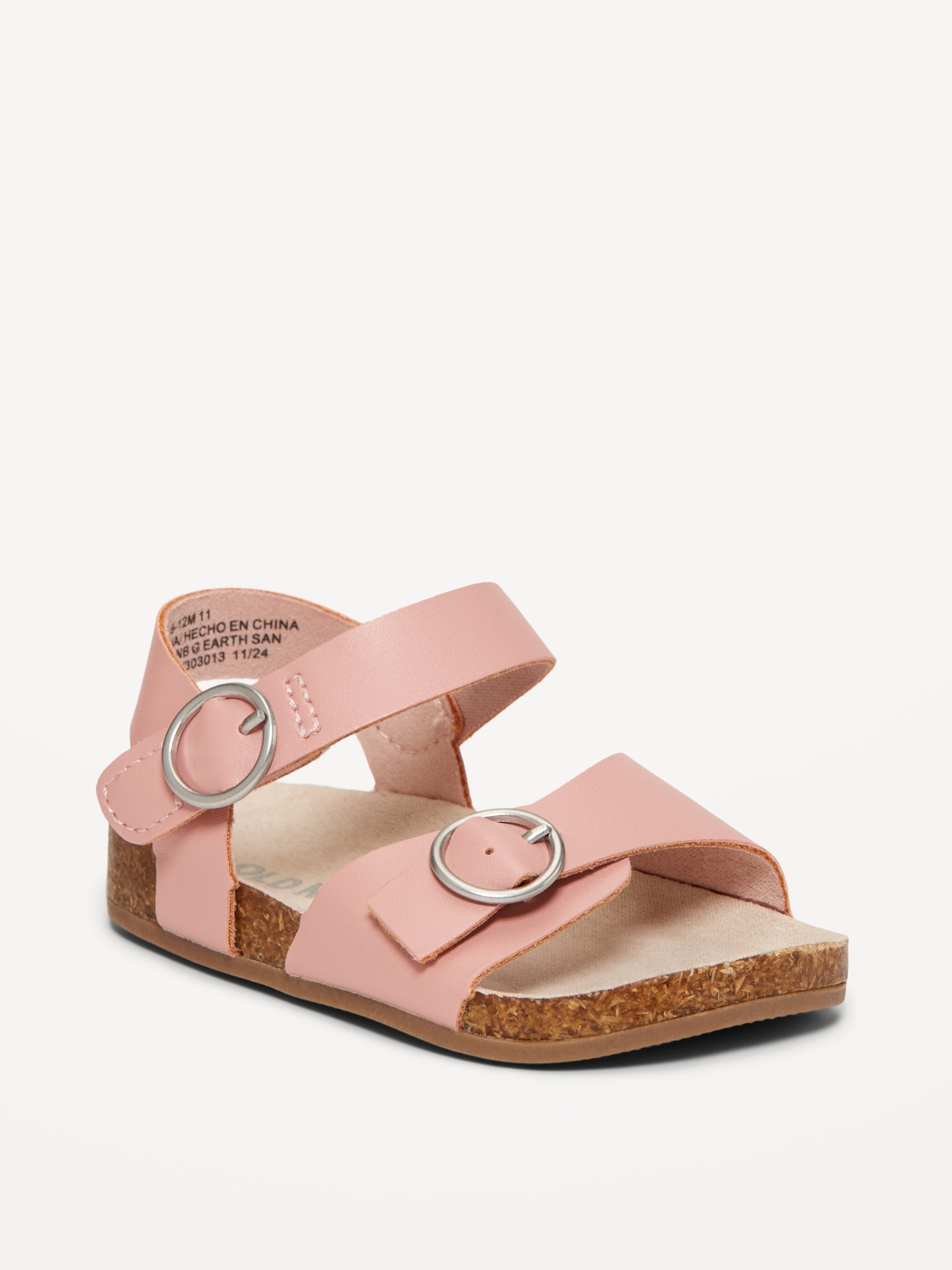 buckled adhesive secure close ankle strap perforated buckled strap across foot faux-cork midsole cushioned foot bed #688602