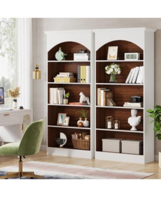 A sleek bookcase with a distinctive arched top, offering five spacious shelves for versatile storage and display in any room.
