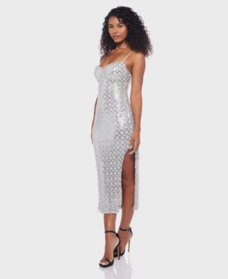 Make an elegant statement in this Alex & Sophia dress, designed with a flattering sweetheart neckline and a chic slit for added allure. A left-side zipper ensures a smooth, tailored fit.