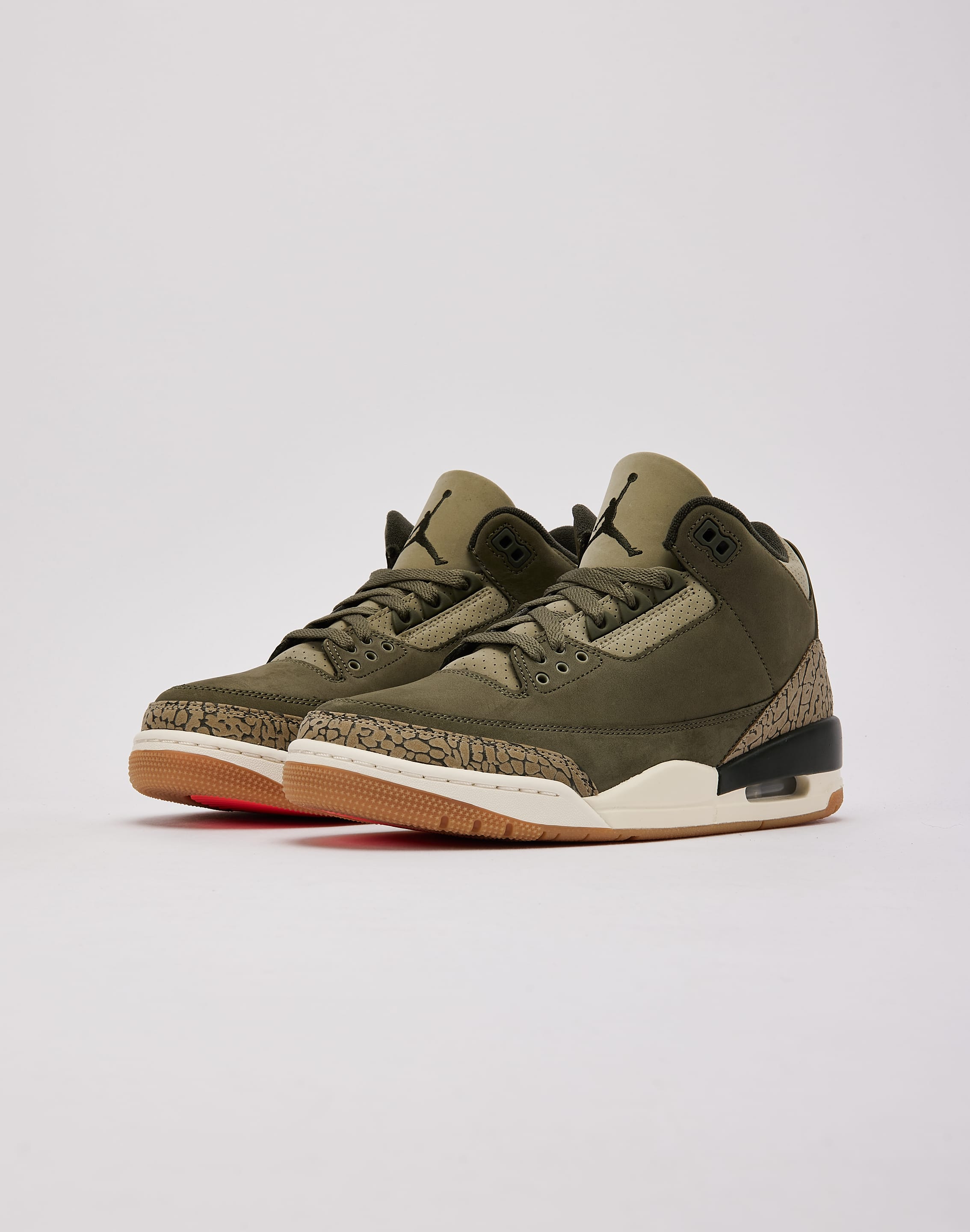 Elevate your everyday look with the new Air Jordan 3 Retro "Medium Olive." This autumn-inspired take on the '88 favorite features a "Medium Olive" nubuck upper with signature elephant-print accents and "Sequoia" hits. Nubuck upper Elephant-print overlays Traditional lacing system Padded tongue with Jumpman branding Pad