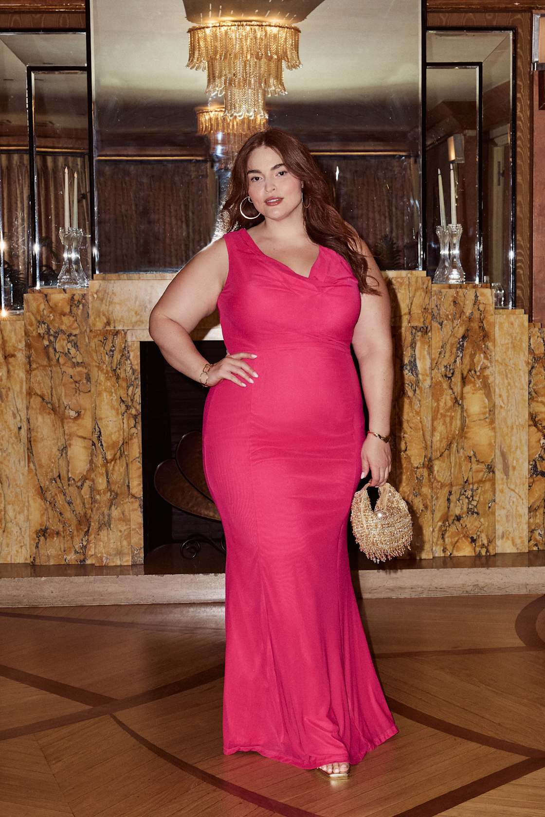 Stunning Mystery Fuchsia Mesh Cowl Back Mermaid Maxi Dress