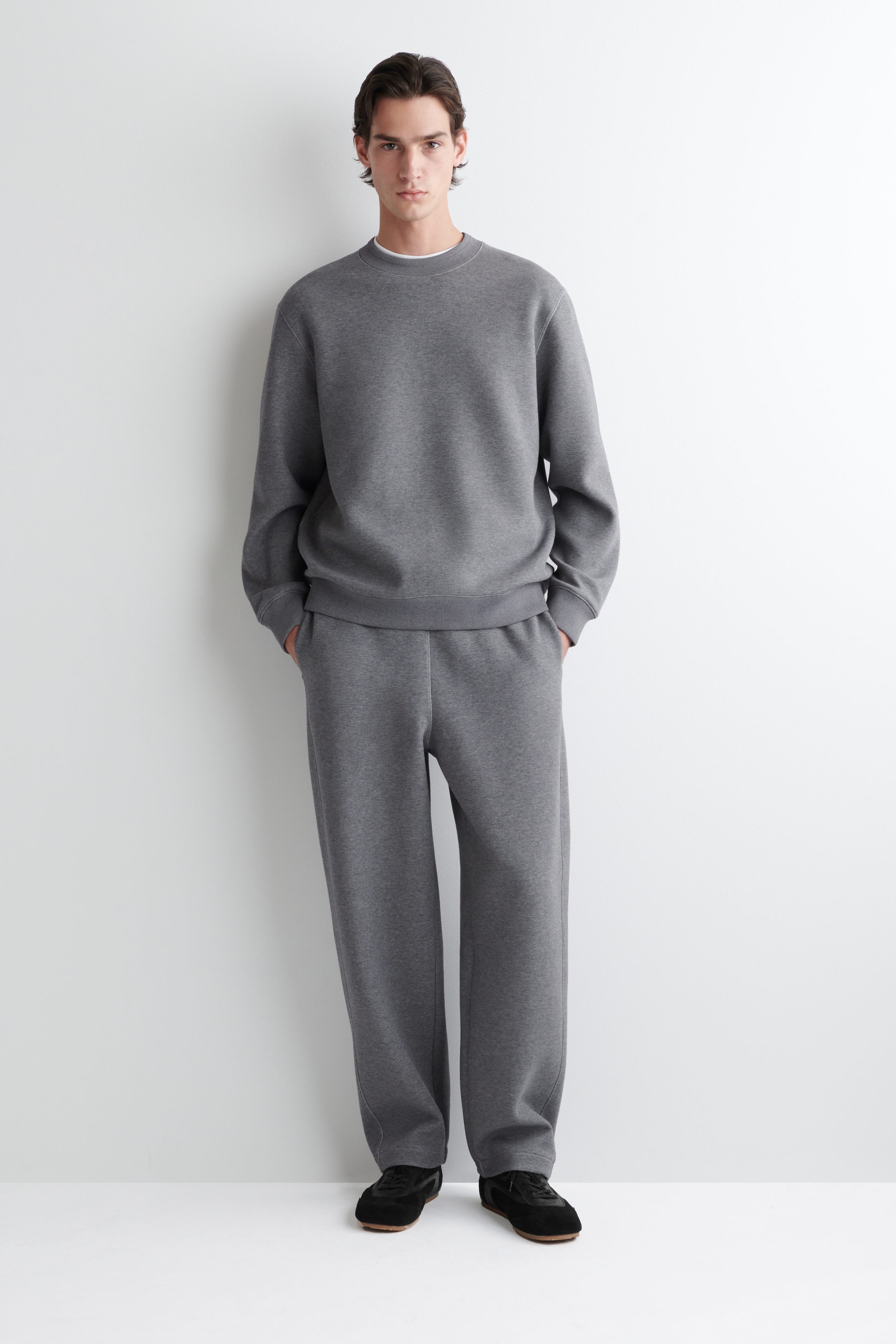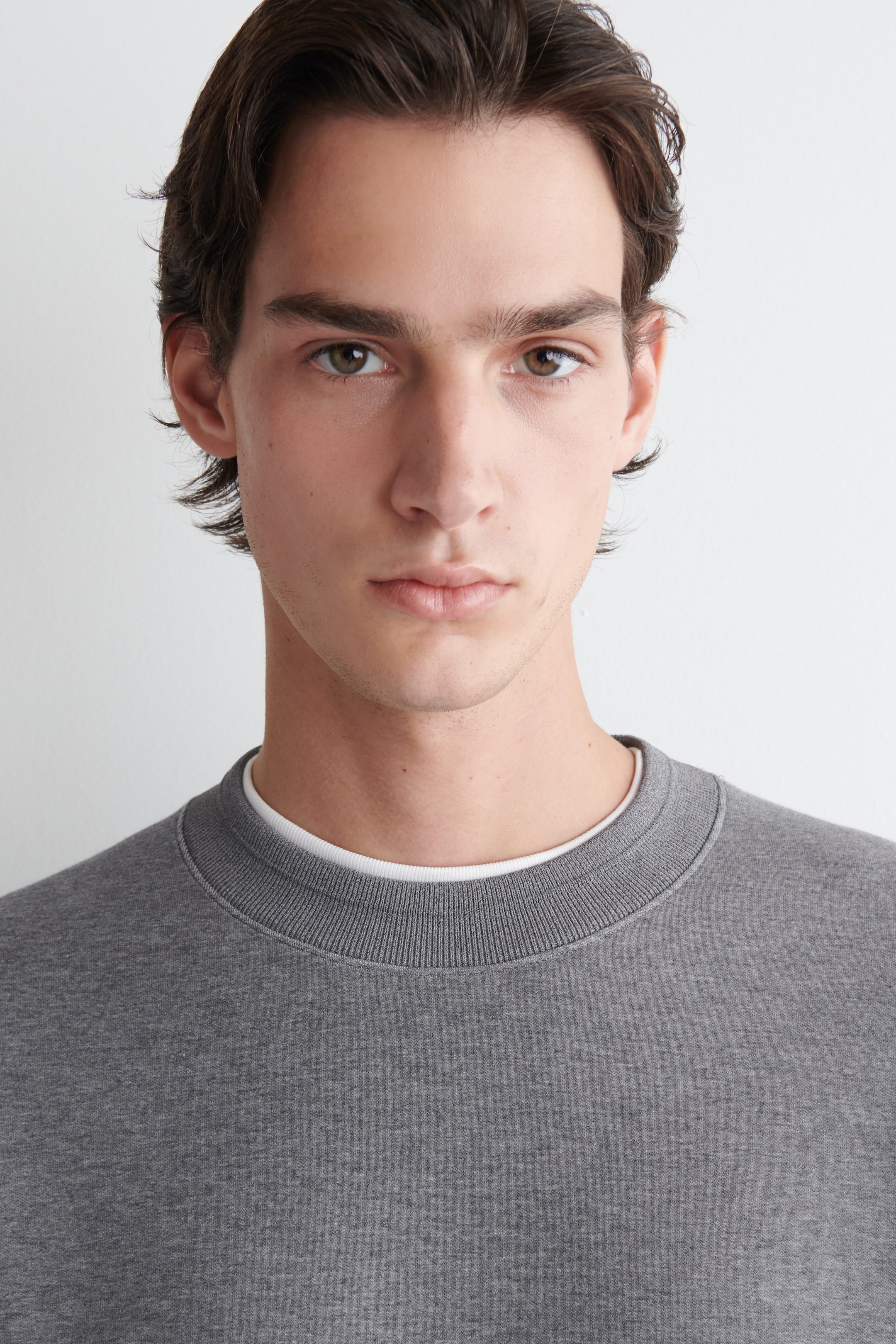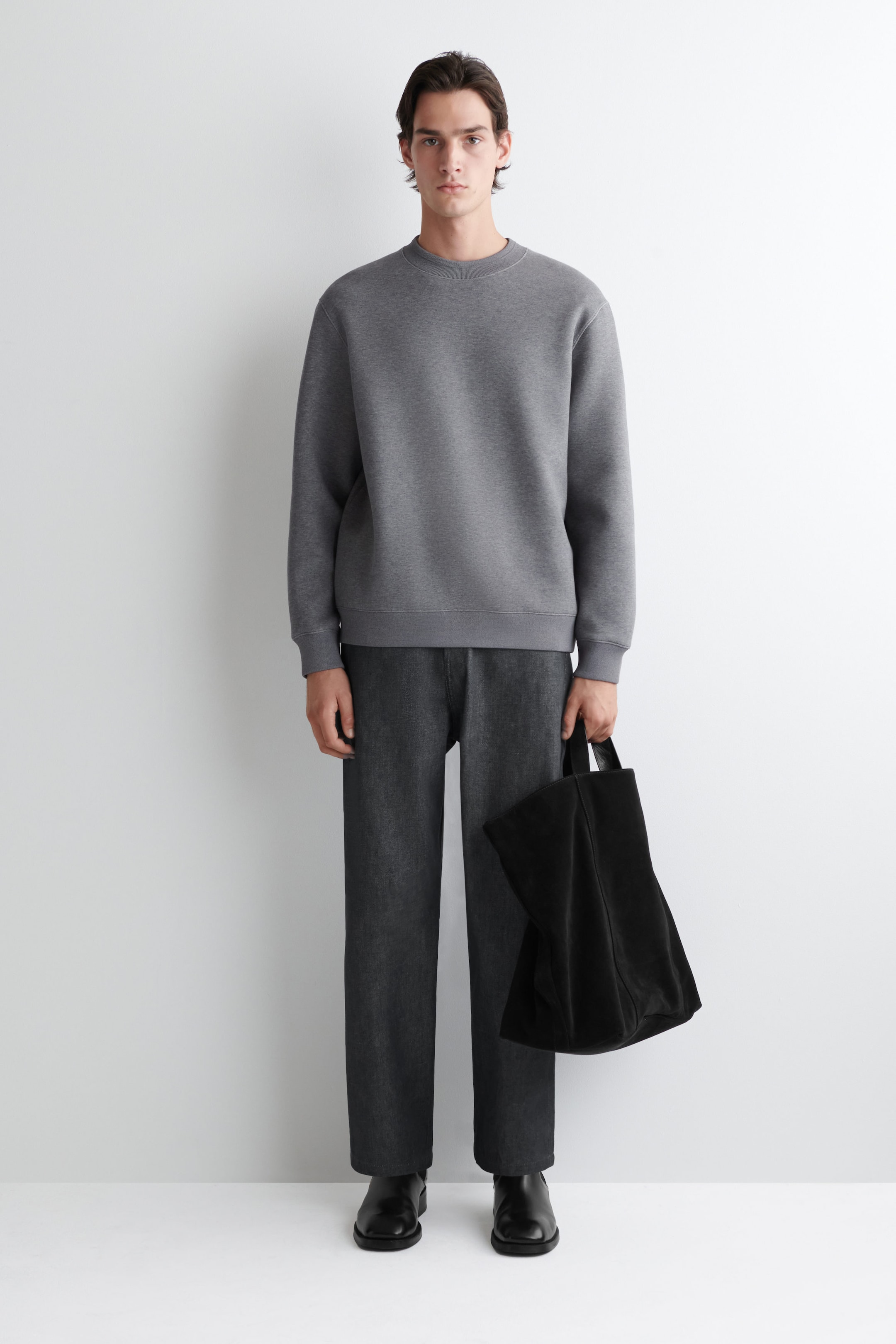 Laid-back shapes and supremely soft fabrics lead a wardrobe that's primed for the weekend. This modern sweatshirt is cut in a relaxed fit and crafted from spongy cotton-blend scuba with finely ribbed trims. Style it with classic denim. Relaxed fit, 380gsmRecycled polyester is polyester made from PET bottles or end-of-life textile waste. The PET bottles or textile waste is mechanically recycled and processed into new yarn Shell: 58% Cotton, 36% Recycled polyester, 6% Elastane. Rib: 77% Viscose, 20% Polyamide (Nylon), 3% Elastane. Neck lining: 100% Cotton. Excluding trims / Machine wash Back length of size M is 26.46” / Model wears a size M