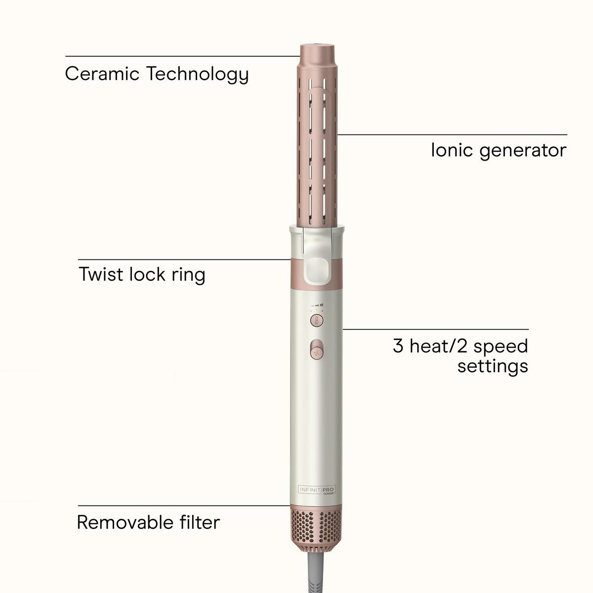 Style as you dry with the powerful InfinitiPRO by Conair DigitalAIRE Styling System. With ceramic technology and 4 different attachments that smooth, curl, dry, and add volume, heat is evenly distributed for frizz- and damage-free hair that shines.