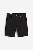 5-pocket shorts in cotton denim with gentle stretch for good comfort. Slim fit from waist through thigh. Regular waist, zip fly, and straight legs with foldover cuffs and removable tack stitches. Perfectly paired with a plain T-shirt.