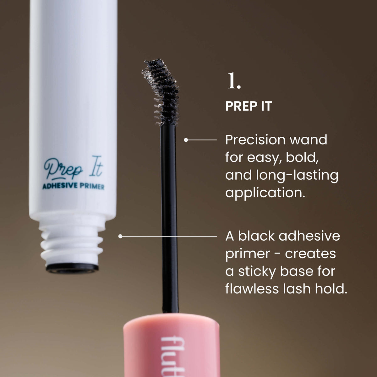 Introducing Prep It. Seal It. A limited edition exclusive that pairs the stick and grip of The Setup, with a sealer to remove sticky residue. Your lashes will be left feeling smooth and flawless! Prep It is a black adhesive primer featuring a mascara wand applicator with a small bend, for a precise application at the root of your lashes, giving you a sticky base to lock your lashes into place. Combine Prep It with our Made For This Adhesive® for an unbeatable hold lasting up to 10 days. Prep It. Seal It. makes application easy and mess free by helping to secure your lash segments in place, paired with a sealer to remove any tacky residue. Grab one for yourself while supplies last!