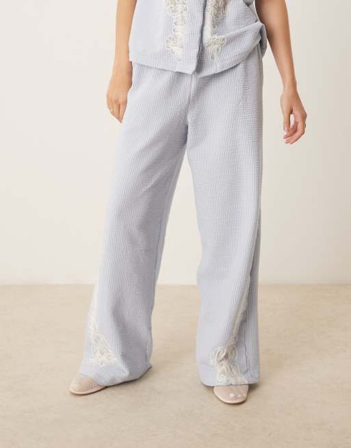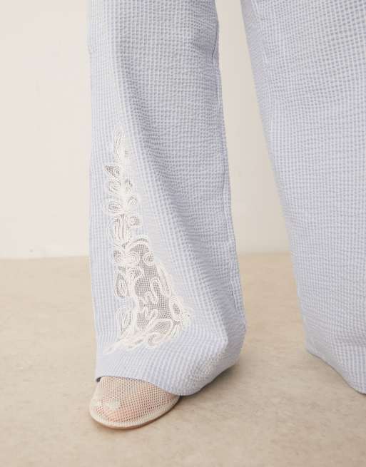 ASOS DESIGN seersucker embroidered wide leg pants in stripe - part of a set