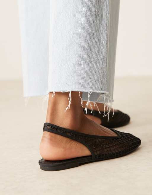 ASOS DESIGN Lisse point-toe slingback ballet flats in black weave