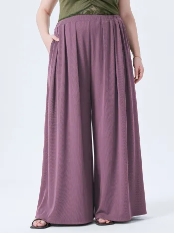 Solid Elastic Waist Pocket Wide Leg Pants Curve & Plus
