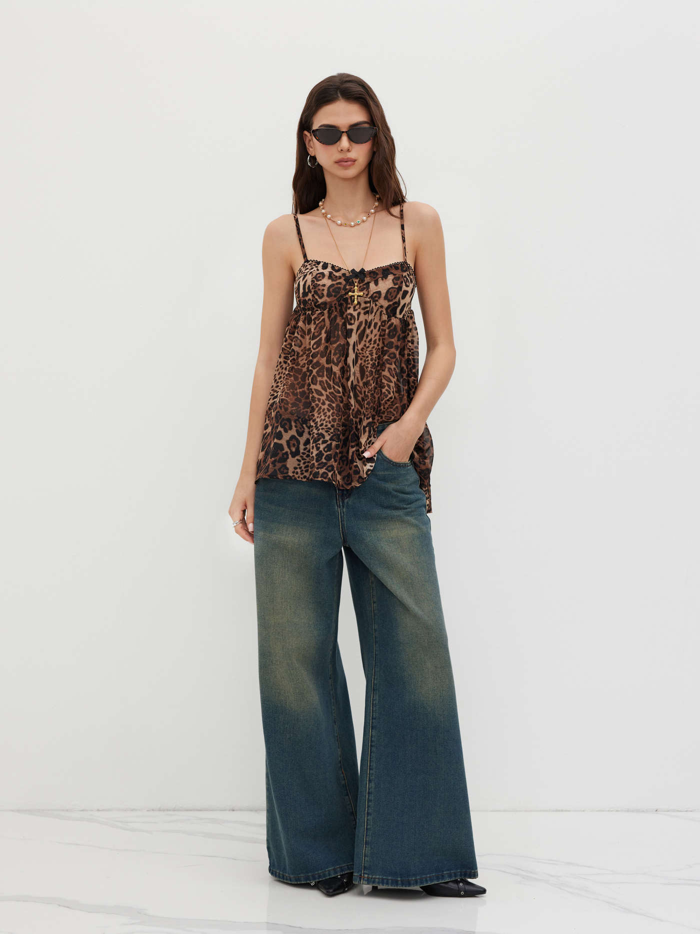 Chiffon Leopard Bowknot Oversized Mini Nightdress