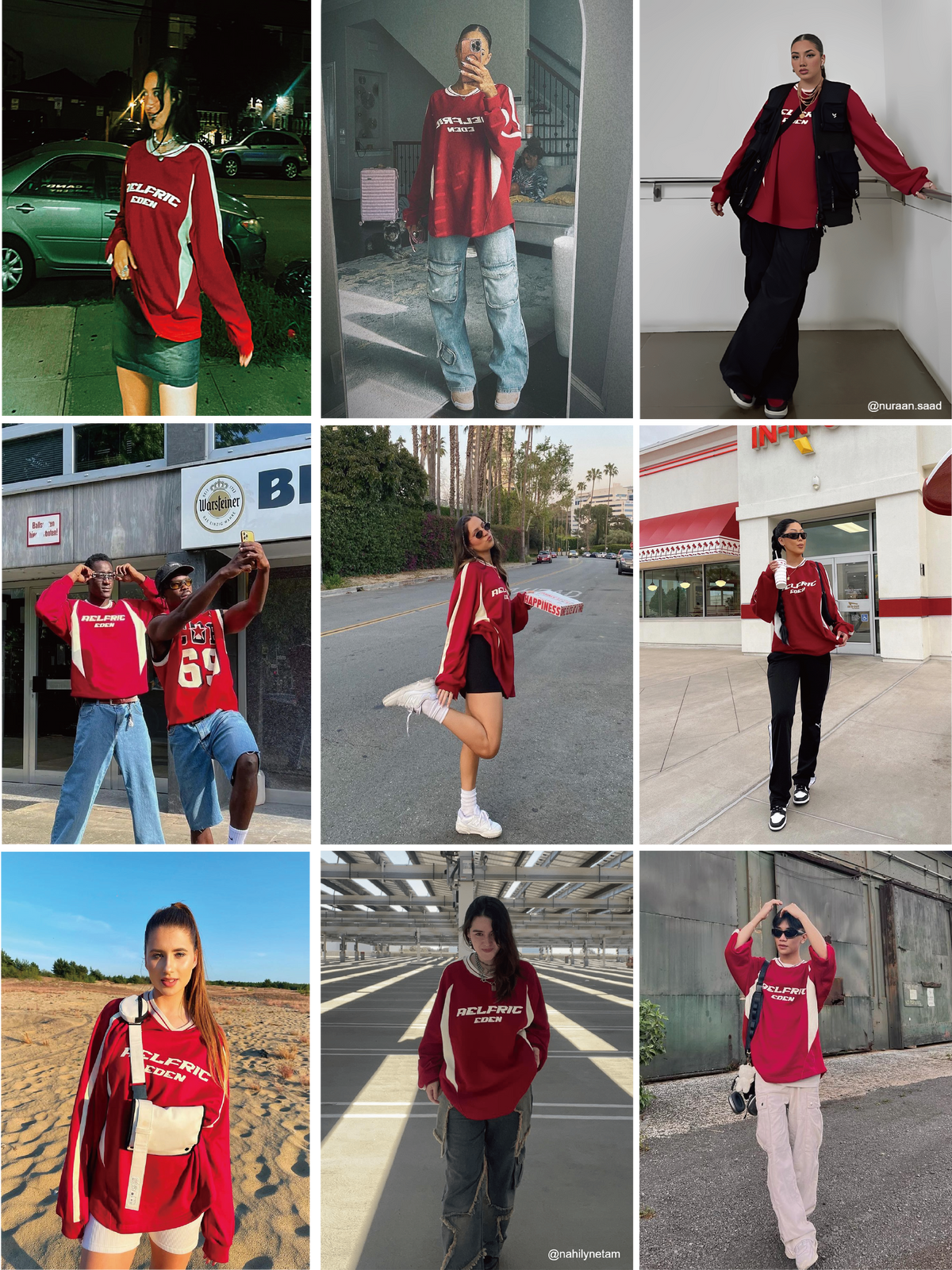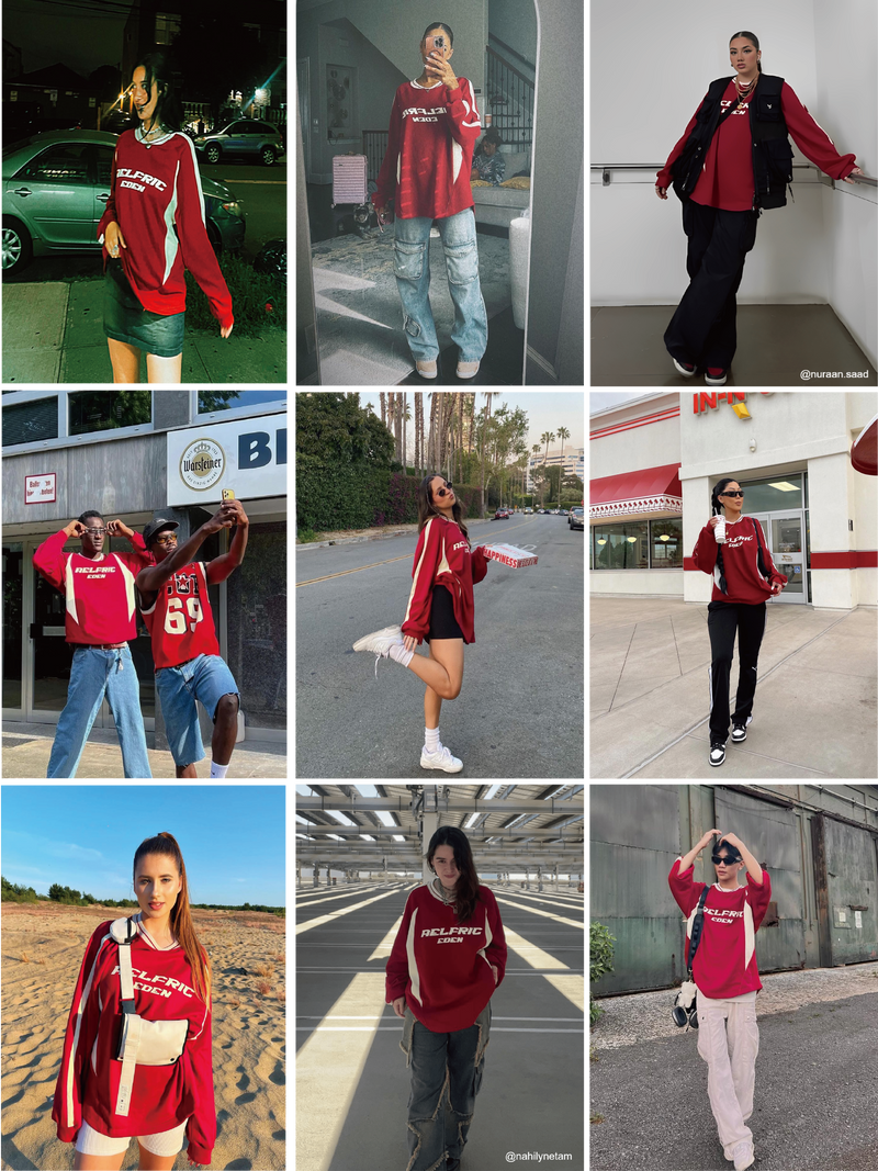 Like a bright red sun, this sweatshirt perfectly combines retro and street style. The unique collage design is like an artist's creative graffiti, injecting vigor and vitality into the classic red. Wearing it, you feel as if you are in the bright red streets of the city, or the idyllic scenery of the quiet countryside. This is not just a sweatshirt r, but also a picture full of passion and confidence. Whether paired with jeans for a casual look, or paired with sweatpants for a dynamic look, you can find your own unique style in it.Material: 53% Cotton, 47% Polyester.Clothing Details: Splicing. @faouziaofficial ♬ suara asli - Galuh@ayenicoleaye let’s just spark a new flame🔥 dc @austin ♬ New flame mashup - ;)@spoiledmel siblings who love @aelfricedenofficial #aelfriceden ♬ New Jeans - NewJeansMODEL INFOSIZE GUIDE ( Red And Green Style)