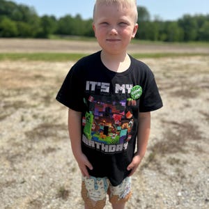 Personalized Game Birthday Shirt, MineC Party Theme, Game Lover Tee, Family Matching Tee, Gift for Birthday, All Sizes, Unisex Tee MN04