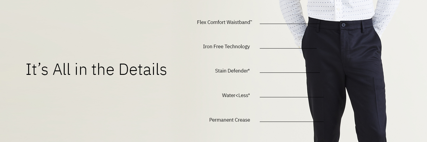 We revamped a classic. Our tried-and-true Signature Iron Free Khaki now features Stain Defender®. This PFAS-free stain-repellent causes water-based liquids to bead up and roll right off before they can be absorbed into the fabric, so you can look sharp on the go.The best-in-class khaki — now with Stain Defender® Our relaxed pleated fit is built with more room to move Dockers® Stain Defender® is a PFAS-free stain repellent that causes water-based liquids to bead and roll right off before it can be absorbed into fabric This specially developed No Wrinkles fabric doesn't crease easily Zip fly Imported Style: A66050000 Beautiful Black