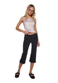 This blouse has a satin construction, an all over polka dot pattern, satin ribbon bows on the front, adjustable shoulder straps, ribbon adorned straps on the back, a peplum hem, and a side zipper closure.