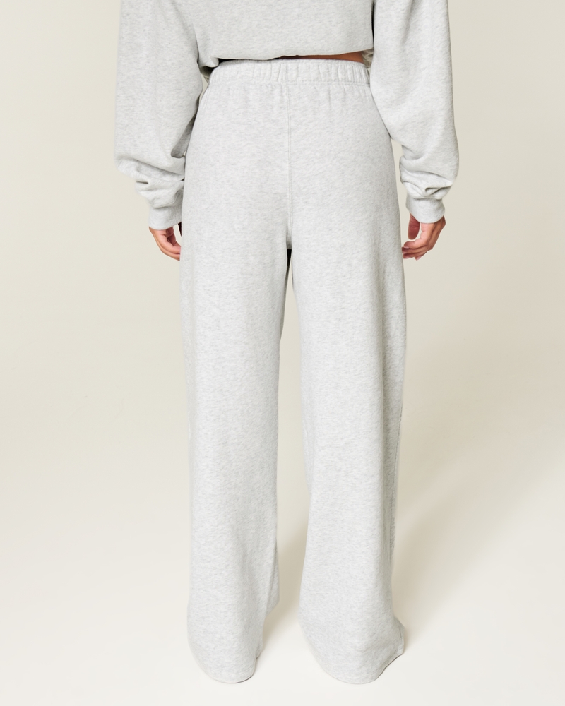 Super soft fleece sweatpants designed with a wide leg and banded waist. Pockets.