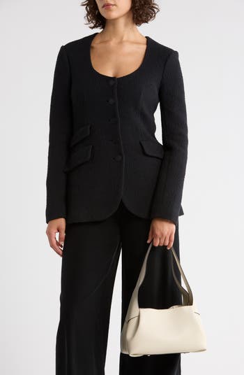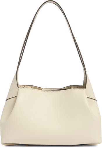 <p>A glinting foil logo brands this softly structured shoulder bag that's crafted from smooth calfskin and designed with dual interior compartments.</p>