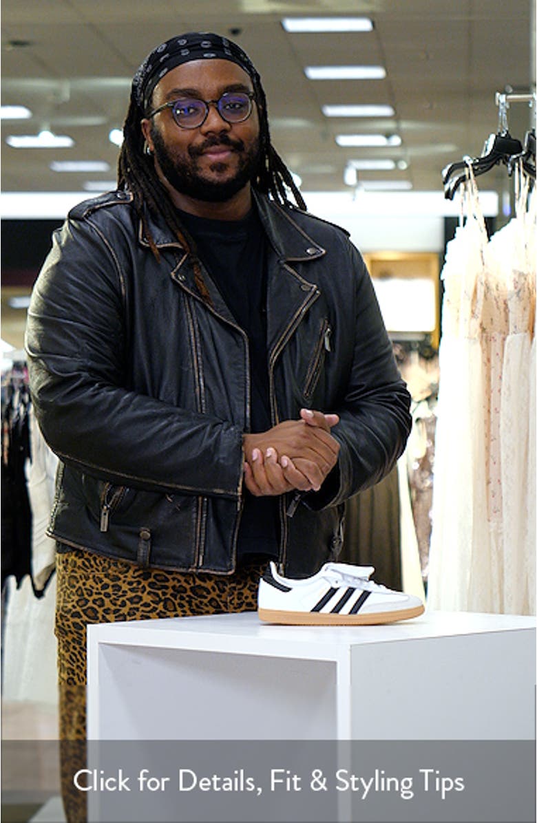 <p>An indoor football trainer takes a step into the sun in a street sneaker still sporting the quilted forefoot and foldover tongue that kept it winning on the pitch. It sits in a gum-rubber cupsole molded with a grippy tread and embedded pivot circle to give it traction across all your favorite looks.</p>