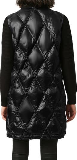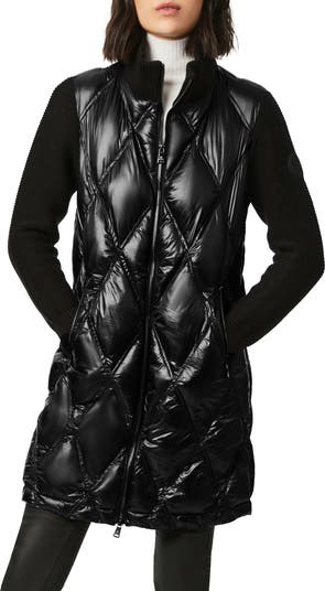 <p>Mixed-media styling brings a modern edge to a diamond-quilted puffer coat detailed with a contrasting ottoman-stitch collar and sleeves.</p>