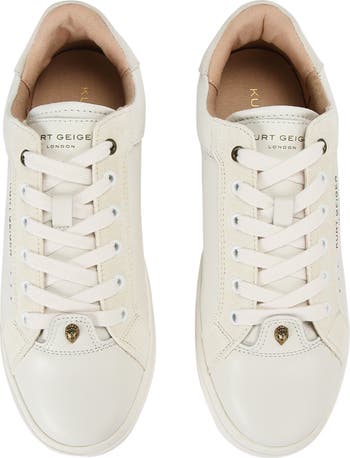<p>A gleaming eagle head brings signature branding to a smooth leather sneaker set on a stylishly textured platform sole.</p>