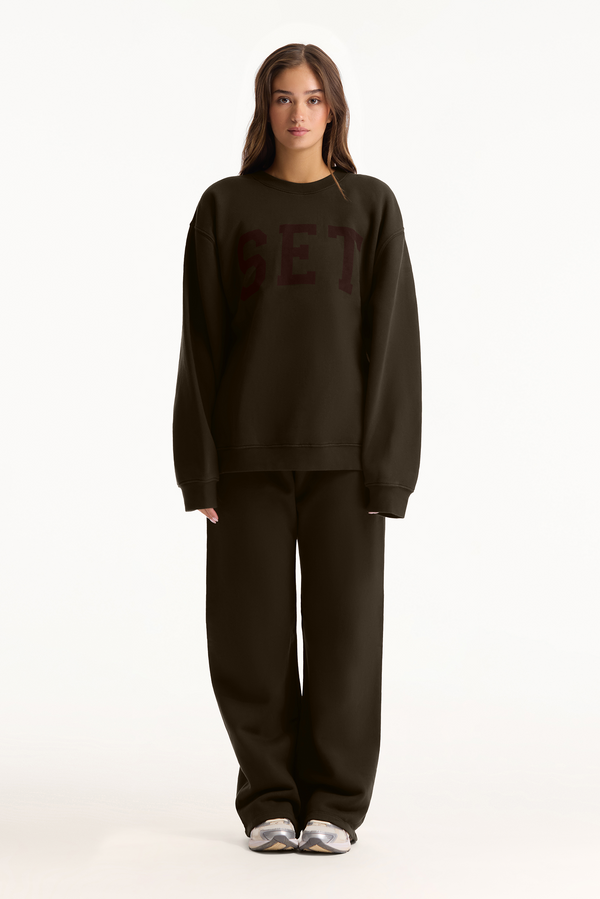 Vintage-inspired midweight crewneck in Maverick. Oversized fit with ribbed trims and bold SET logo across the chest.
