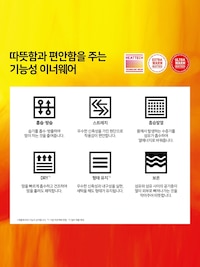 - 몸을 따뜻하게 해주는 흡습 발열 테크놀로지. - 히트텍과 코튼이 블렌드되어 따뜻함과 부드러운 감촉을 모두 갖춘 소재. - 옷 안의 습기를 흡습해 외부로 배출하여 습기를 줄여주는 흡습·방습 기능 포함. - 특수한 짜임새로 우수한 신축성과 내구성을 실현, 세탁을 해도 형태가 유지됩니다. - 보온 기능 포함. - 품질 표시 라벨이 포함되어 있습니다. * 의류의 보온력을 나타내는 CLO값을 바탕으로 산출, 기본 히트텍 소재와 비교, 보온성의 시험방법: ASTM D 1518-85 (시험실온습도: 20℃, 65%RH) ※ HEATTECH은 Fast retailing co., LTD.이 보유하고 있는 등록 상표입니다.