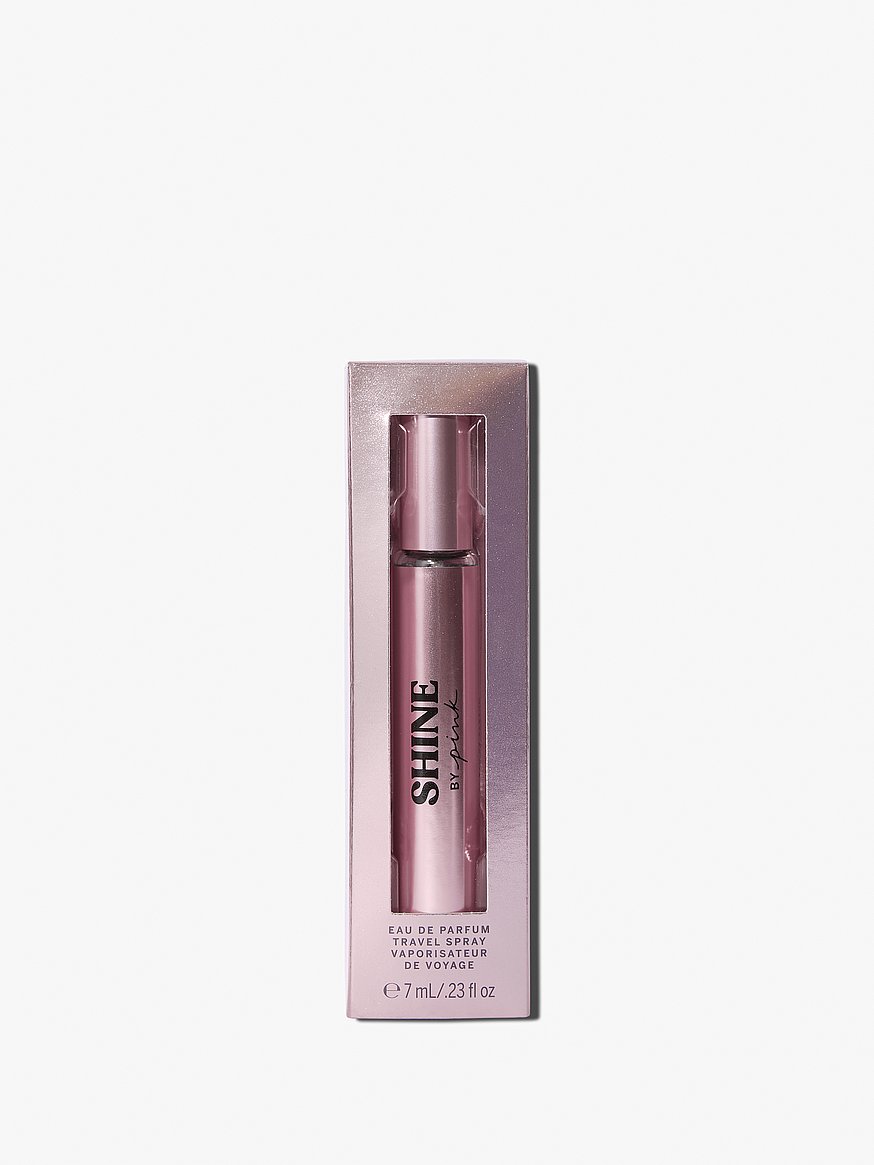 <p>A convenient, goes-everywhere travel size of our new scent!<br> FIND YOUR INNER SPARKLE<br> You know that glowing, all-lit-up feeling you have when you get dressed up for a night out? That’s SHINE.<br> <br> Top Note: PINK DRAGONFRUIT <br> The heart of the scent— juicy, fruity, flirty. <br> <br> Mid Note: SUGARED PETALS <br> A wild, blooming bouquet of fragrant flowers.<br> <br> Base Note: CHANTILLY CREAM <br> Soft, creamy, and tinged with vanilla.<br> <br> The perfect blend of fun and confident, it lights up the star inside you. One spritz, and you’re all dressed up.</p> <ul> <li>7mL / .23fl oz</li> <li>Vegan</li> <li>Against Animal Testing</li> <li>Dye-Free</li> <li>Made with Essential Oils</li> <li>26926950</li></ul>