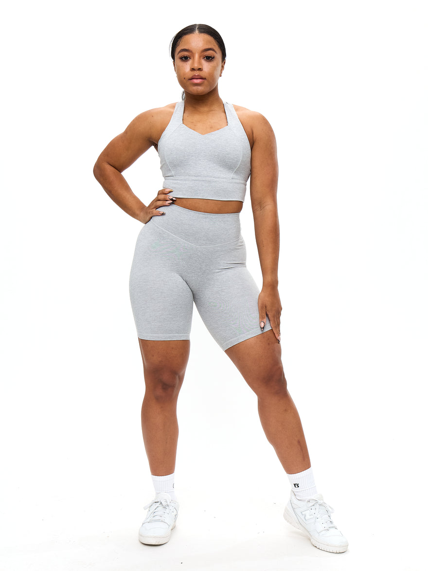 Features:• High Rise• V-waistband• Silicon logo• No front rise seamDetails:• Fabric: Dream Heathered (Recycled Polyester/Spandex)• Inseam: 7” • Medium Compression Description:The Dream Heather Shorts are designed with a V-shaped waistband to highlight your waist. They feature a hidden flat elastic at the back rise to help emphasize the glutes and are made with an ultra soft, medium compression, heathered fabric.