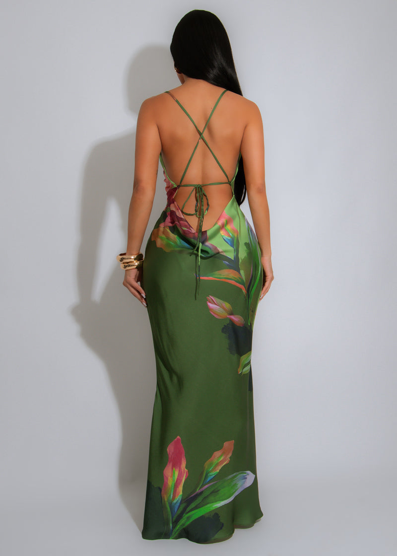 Save on Poetic Love Floral Satin Maxi Dress Green with a Diva Boutique Online discount code