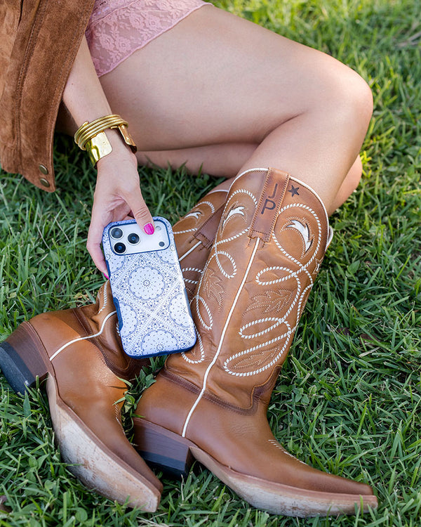 Bring a little luck everywhere you go with the Lucky Bandana Case, part of the Keepsake Collection by Jenna Palek. This design captures Jenna’s signature carefree vibe with a timeless bandana print in a dreamy shade of blue. Make it your own: choose the standard version as-is, or personalize it with your name, initials, or a special word for a one-of-a-kind keepsake. Whether you’re channeling everyday nostalgia or creating something uniquely yours, this case is made to carry the moments you’ll want to hold close. Built with ultra-strong MagSafe® compatible magnets and precise cutouts for the iPhone’s extended camera and capture button, it blends style with protection—so your phone looks good and stays safe.