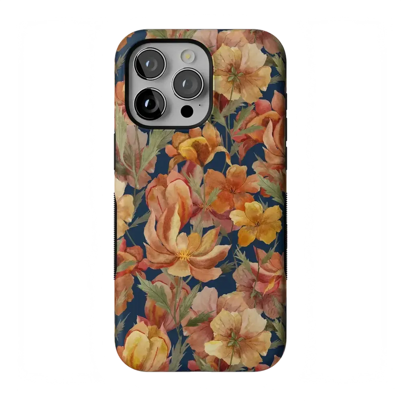 Golden blossoms on a dark backdrop—Fallen Gold | Antique Floral Case blends vintage romance and moody autumn vibes for a bold seasonal phone case.