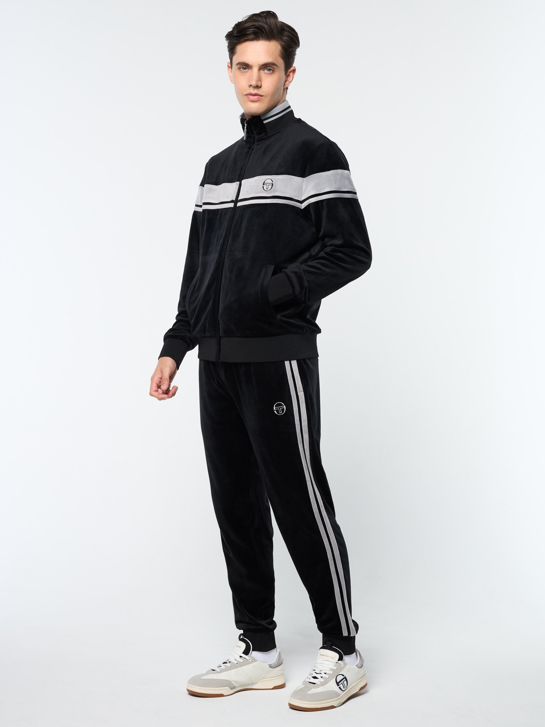 A premium take on a Tacchini classic, the Damarindo Velour Track Jacket is crafted from plush velour for a luxurious feel. Featuring our renowned double stripe at the chest, sleeves, and collar, this elevated full-zip track jacket is complete with spacious handwarmer pockets, rib-knit trims, and our iconic 'ST' monogram logo embroidered at the left chest.Pair with the Damarindo Velour Track Pant for the full fit. (Sold separately) Premium velour track jacket 93% polyester / 7% spandex velour Full zip closure with custom-branded zipper pull Stand-up rib-knit collar with yarn-dyed double stripe Contrast double stripe at chest, back, and sleeves 'ST' monogram logo embroidered at left chest Welt handwarmer pockets Rib-knit cuffs and hem Style #: 50736