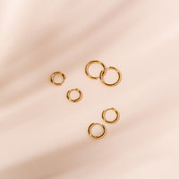 Simply a classic, our Classic Hoop Earrings is your new go-to earring that’ll never let you down. Lightweight and perfectly paired with any piece in your wardrobe, these 18k gold plated earrings are your everyday earrings that you will never want to take off. Available in three sizes and waterproof, they are perfect to mix and match! Size : Mini : Outside diameter: 14mm / 0.55" ; Inside diameter: 9mm / 0.39" Medium : Outside diameter: 17mm / 0.67" ; Inside diameter: 12mm / 0.47" Large : Outside diameter: 21mm/ 0.81" ; Inside diameter: 15mm / 0.60" Material : Premium Stainless Steel + 18k gold PVD coating Waterproof & Sweatproof : Shower, swim and exercise with it, the color remains perfect Hypoallergenic, Nickel-free & Lead-free Delivered in an eco-friendly packaging & with a pack of stickers