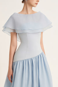With a layered boat neck design and gabardine fabric, the cape is a stylish and functional addition to any wardrobe. The boat neck provides a flattering neckline, while the gabardine material offers durability and a clean, polished look. This versatile cape is perfect for any occasion, making it a must-have for any fashion-forward individual.